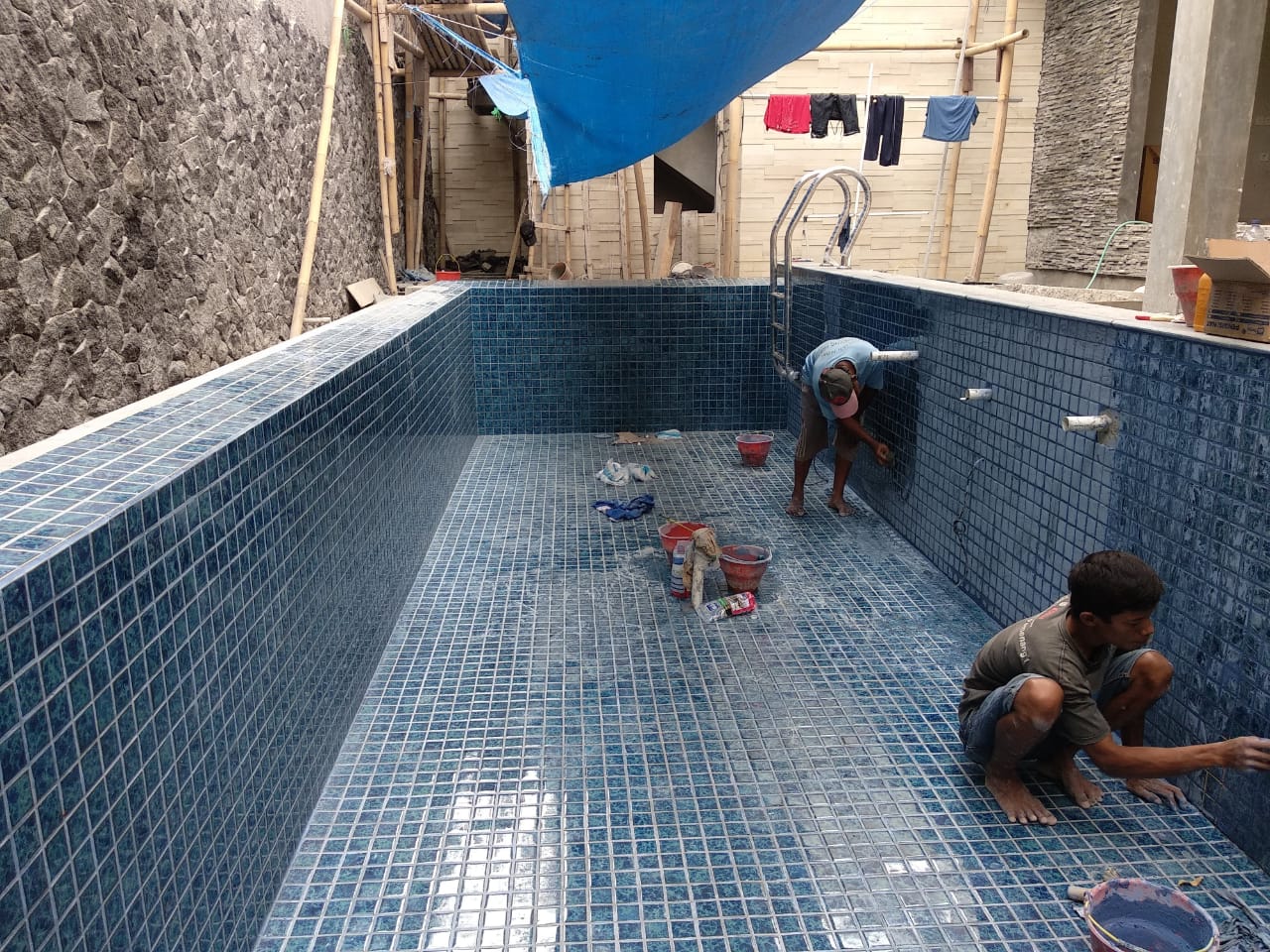 5. Finishing dinding dan lantai kolam keramik sejenis MOZAIK KUDA LAUT MAS / KERAMIK ROMAN / KERAMIK ASIA TILE / KERAMIK SAMSON