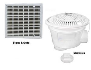 Maindrain dan frame & grate memiliki fungsi yang sama yaitu sebagai lubang drain bawah lantai, lubang ini selain sebagai lubang drain saat buang semua air kolam berfungsi juga sebagai lubang sirkulasi bawah laintai menuju ke mesin kolam renang dan di proses ke filter selanjutnya menuju return inlet
